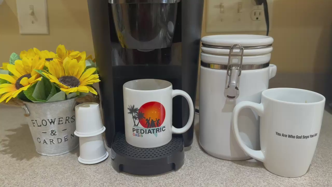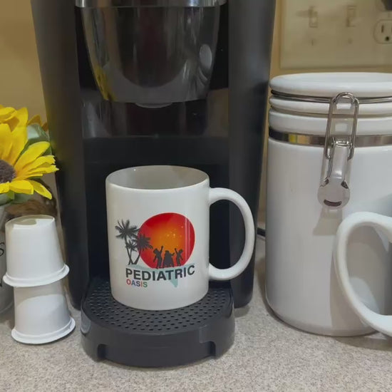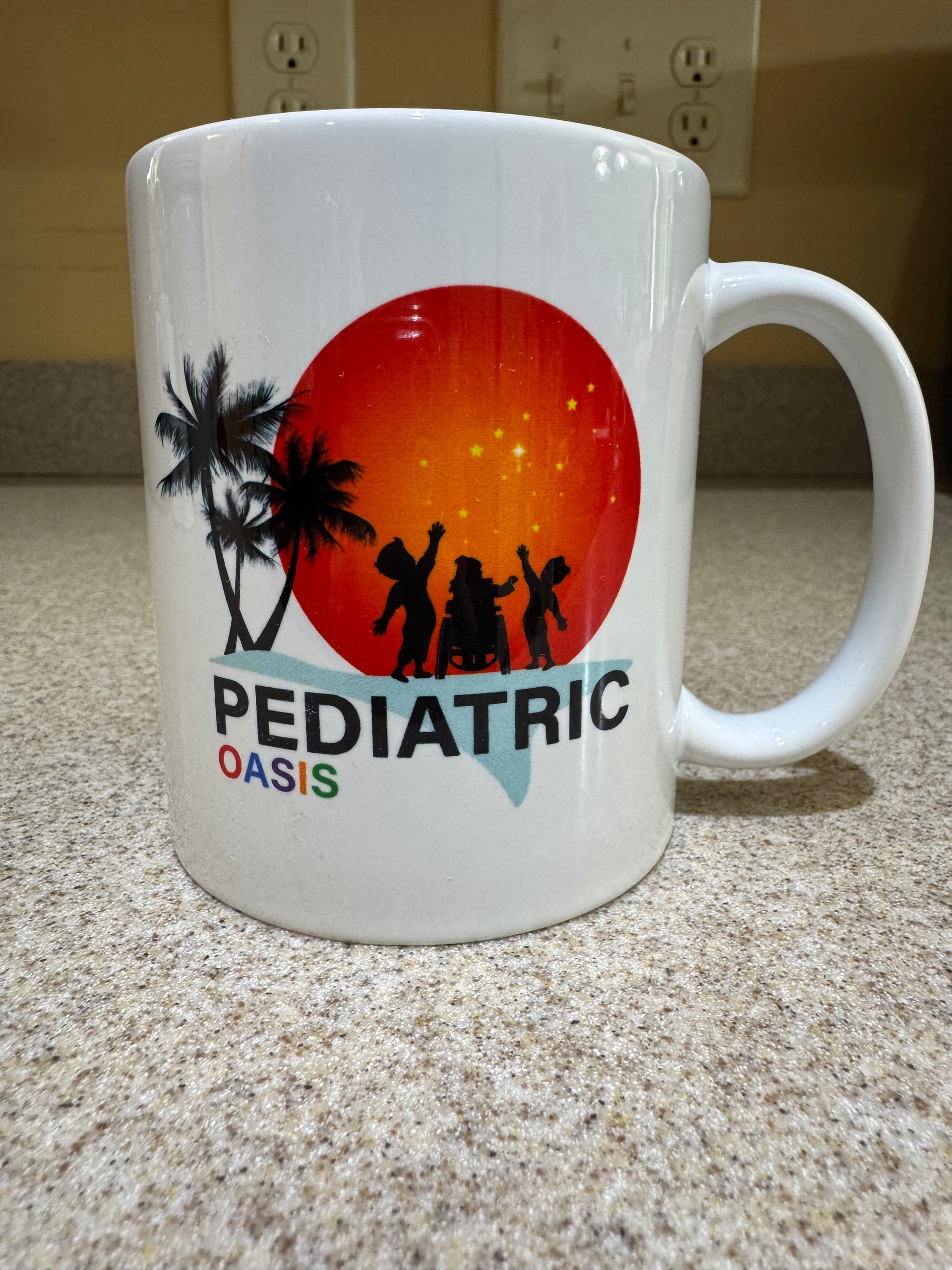 Pediatric Oasis original 12 ounce white ceramic mug pictured with smooth logo is a great find for your mug collection! Inclusive Christian mug with personalized phrase: Jesus Is The Real Truth.